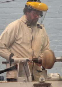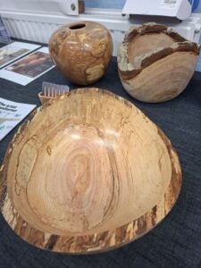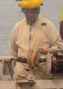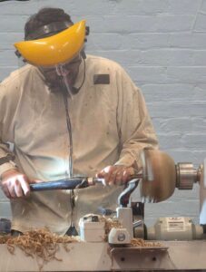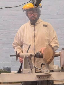 The process from log to bowl. Nicholas is passionate about the sustainability of using wood and so works with ‘Green Wood’ felled locally and where trees are cut down at the end of their life or for safety. He loves working with a ‘live edge’ (preserving the bark as the rim of the piece).